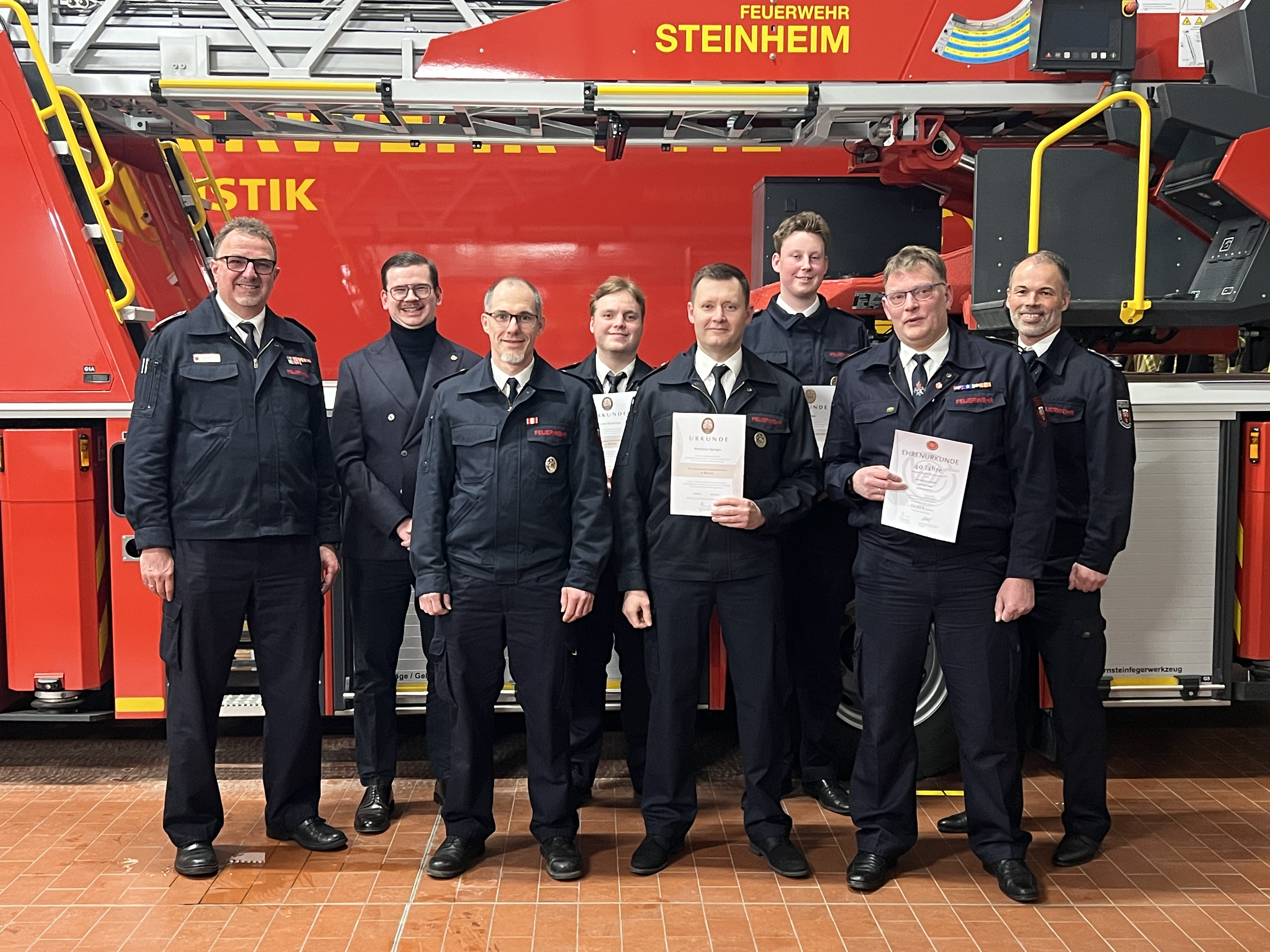 An den im 157 Einsätzen auf Stadtebene war die Einsatzabteilung des Löschzugs Steinheim im Berichtsjahr 132mal beteiligt und leistete in diesem Bereich ca. 2.000 Arbeitsstunden. Ebenso führte der Schriftführer Waldemar Springer im Jahresbericht die in etwas gleichen Stundenanzahl für den Bereich der Aus- und Weiterbildung auf. Hinzu kamen im vergangenen Jahr noch gut 800 zusätzliche Stunden im Rahmen der Ersatzbeschaffung der Drehleiter sowie der erforderlichen Schulungen auf das neue Fahrzeug, eine weitere dreistellige Stundenanzahl wird noch im aktuellen Jahr folgen. Neben diesen feuerwehrtechnischen Diensten beteiligten sich die Einsatzabteilung an einer Vielzahl von kameradschaftlichen Veranstaltungen.