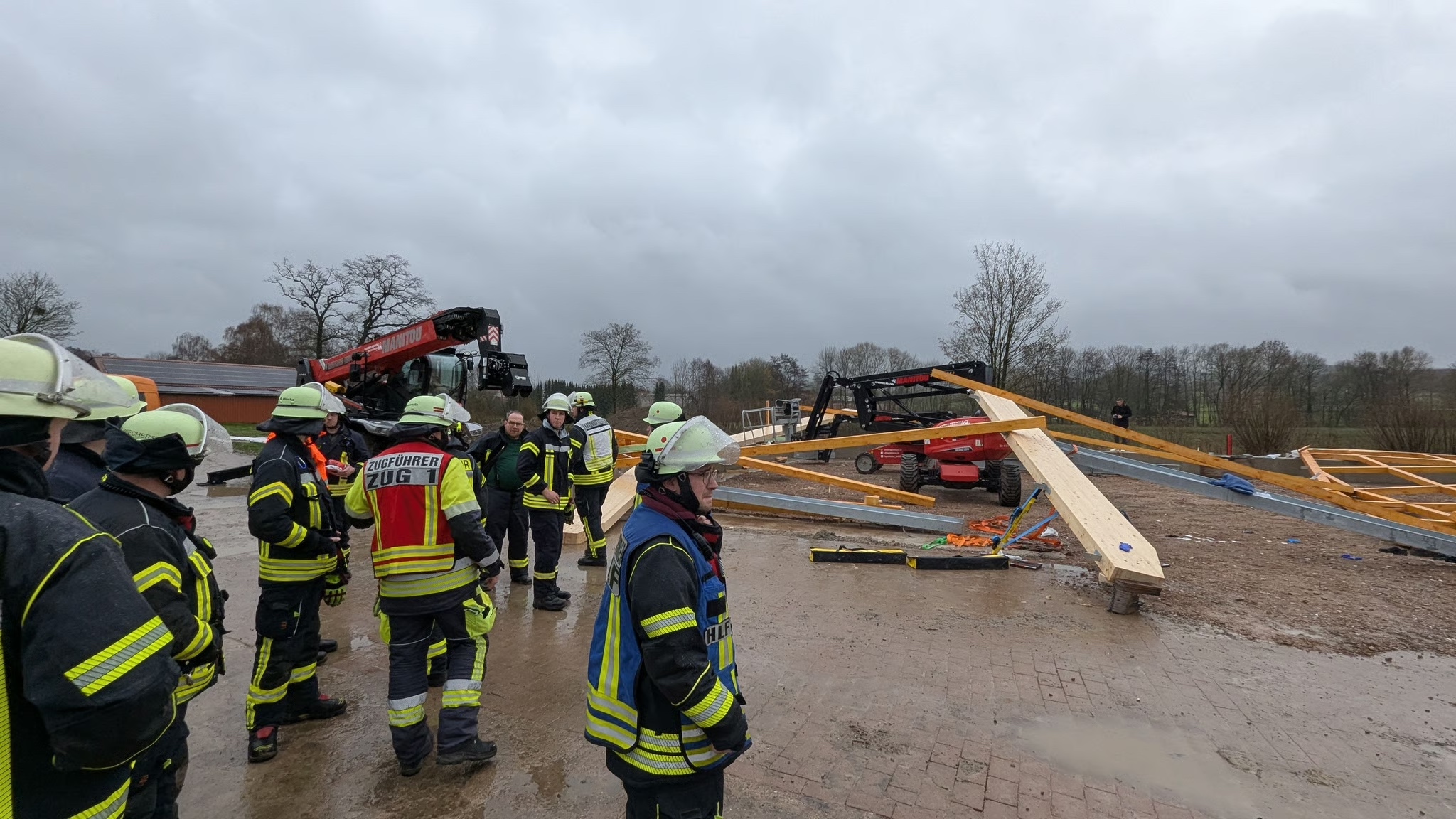 Die Löschgruppe Bergheim wurde zur Unterstützung der Feuerwehr Nieheim zu einem Einsturz mit Personenschaden alarmiert. Eine im Aufbau befindliche Maschinenhalle war zusammengebrochen. Mehrere Arbeiter wurden verletzt.