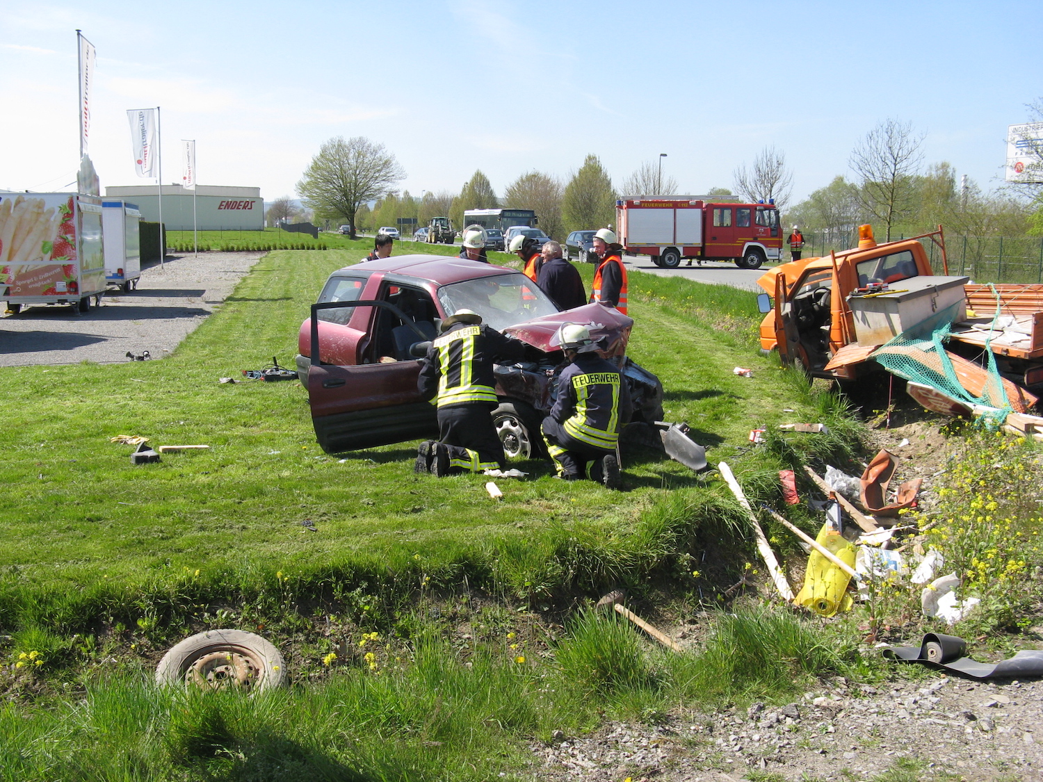 Bei Eintreffen stellte sich heraus, dass keine Person eingeklemmt, aber vier Personen verletzt waren. Der Rettungsdienst versorgte mit zwei Notärzten (Steinheim, Bad Driburg) und fünf Rettungswagen (Steinheim, Brakel, Bad Driburg, Blomberg und Horn-Bad Meinberg) die beteiligten Personen. Die Feuerwehr sicherte die Einsatzstelle ab und unterstützte den Rettungsdienst.