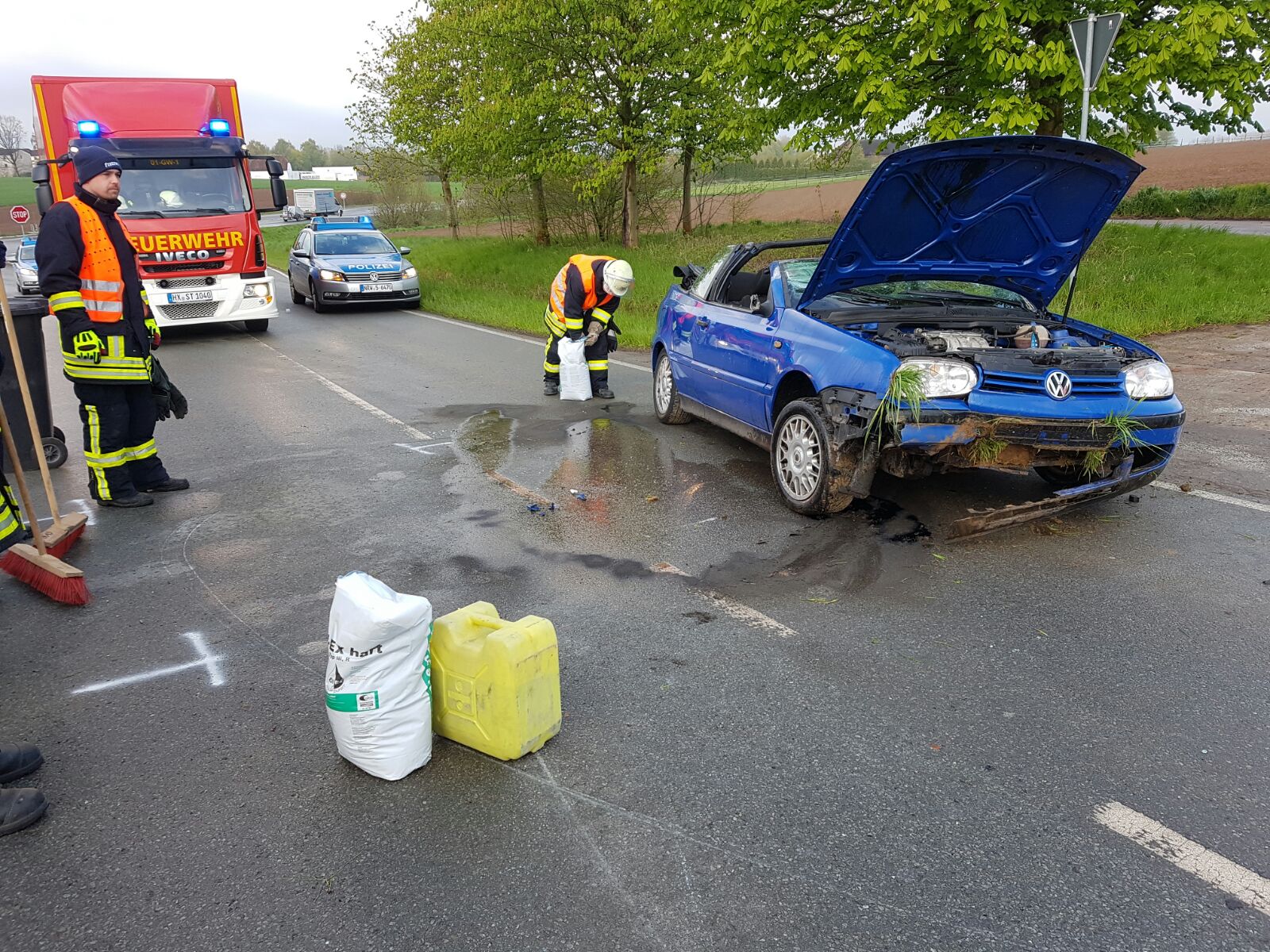 Die Feuerwehr wurde zu einem Verkehrsunfall zwischen Wöbbel und Steinheim gerufen. Nach einem Überholvorgang geriet der Wagen eines 18-Jährigen aus bislang ungeklärter Ursache ins Schleudern. Das Fahrzeug rutschte über die Fahrbahn und kam auf dem Dach liegend zum Stillstand. Der Fahrer wurde verletzt und vom Rettungsdienst versorgt und einem Krankenhaus zugeführt. Die Feuerwehr sicherte die Einsatzstelle und beseitigte auslaufende Betriebsstoffe.