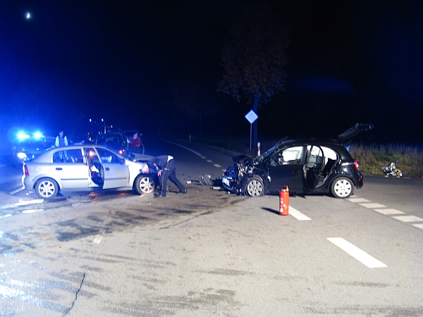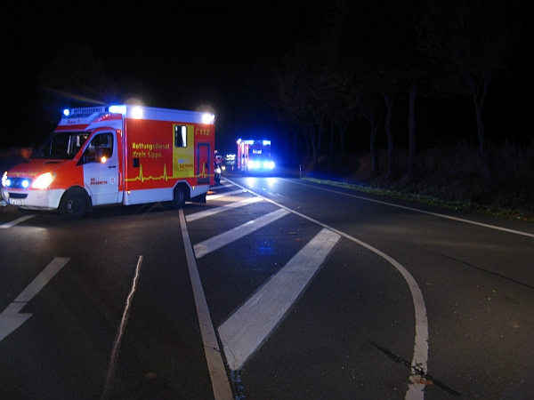 Auf der Ostwestfalenstraße Abfahrt Krankenhaus Steinheim ereignete sich ein Verkehrsunfall mit zwei PKWs. Fünf Personen wurden verletzt. 4 Rettungswagen und 2 Notärzte waren neben der Feuerwehr im Einsatz. Der Löschzug unterstützte den Rettungdienst bei der Patientenbetreuung, sicherte die Unfallstelle ab und leuchtete diese aus. Abschließend wurden auslaufende Betriebsstoffe abgestreut und aufgenommen.