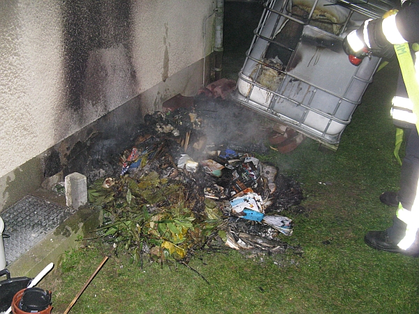 An einem Wohnhaus an der Beller Strasse brannte ein Müllbehälter. Dieser konnte durch den Angriffstrupp unter Atemschutz und einem C-Rohr schnell gelöscht werden.