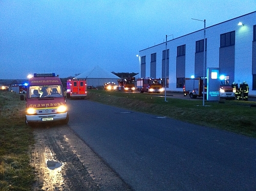 Die Feuerwehr wurde zu einer automatischen Feuermeldung in einen Industriebetrieb in Bergheim gerufen. Nach Erkundung wurde in dem Bereich des auslösenden Melders ein defekter Druckluftkompressor vorgefunden, aus dem Öl ausgetreten ist. Dieses wurde aufgenommen und entsorgt.