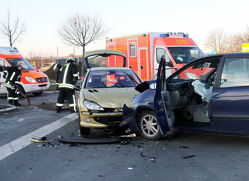 zwei PKWs. Drei Verletzte wurden notärztlich vesorgt und in ein